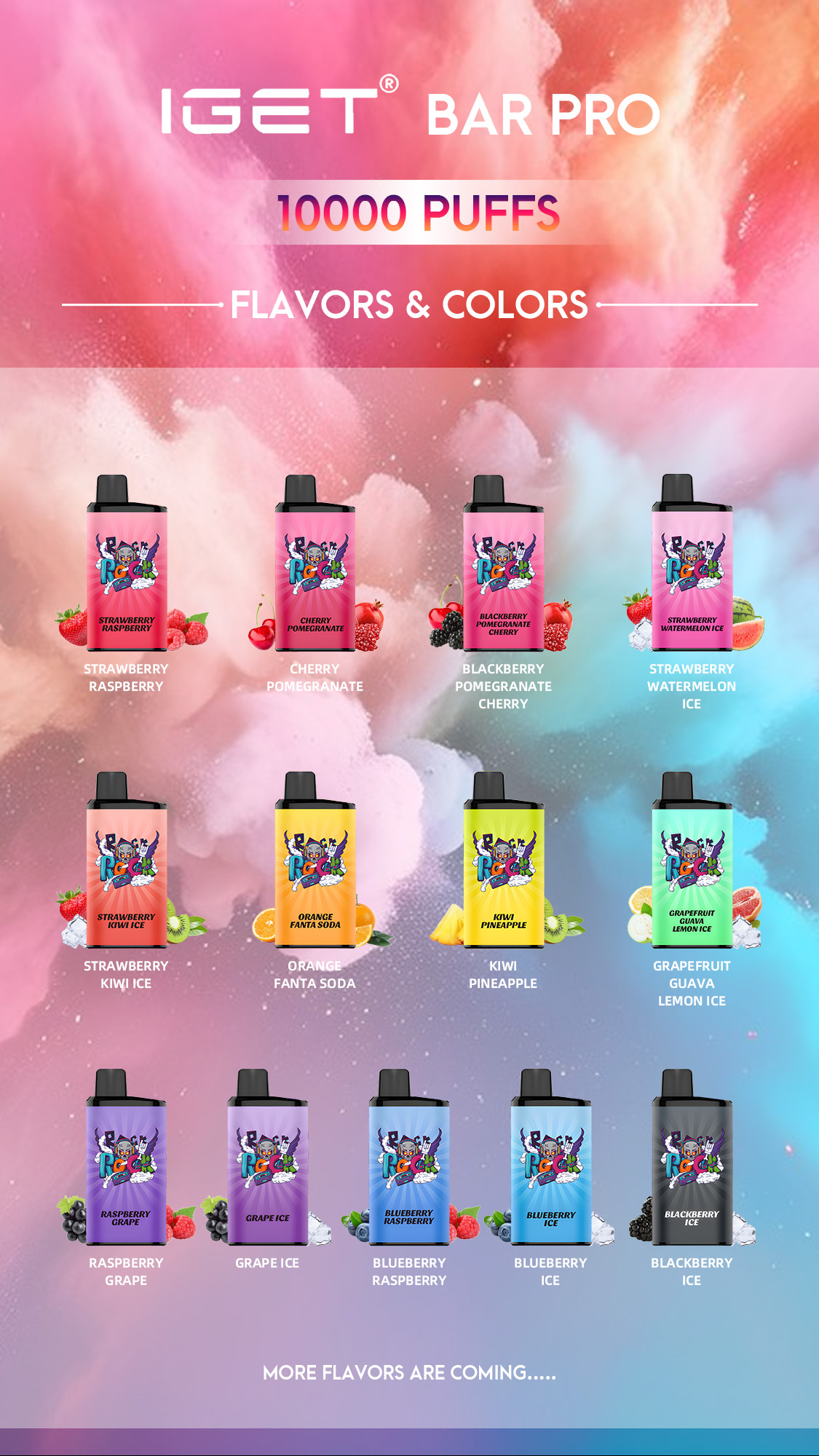 For your reference, here is the entire curated list of the 13 launch flavours for the IGET Pro 10000, each with a short description.
